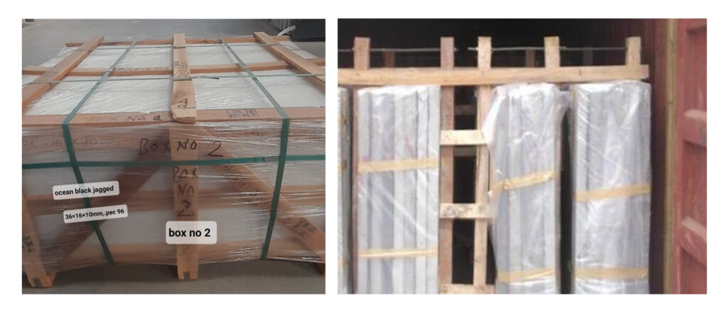 Often suppliers do not pay as much attention to granite packaging as they do to the quality of the product. This is where they lag behind! If the granite tiles and slabs are not packed properly then it might lead to broken tiles or spoilt finish, which ultimately could prove quite expensive to the customer receiving the product. we use durable crates for granite packaging that are made from dry, good quality and strong wood. These crates are made strong enough to withstand the usual 1-tonne weight of the product(s). We use the following materials for extra safety of stone products.